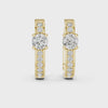 Rose gold diamond hoop earrings with a central round diamond and smaller diamonds along the band.